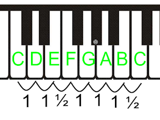 Jadi kalo dalam tangga nada C, C,D,E,F,G,A,B,C maka akan tersusun: